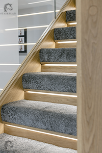 Manhattan Oak Staircase + LED'sManhattan Oak Staircase with LED lights - This contemporary staircase design can create a wow factor in any hallway. |